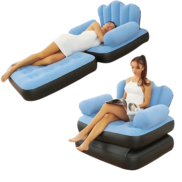 Fotoliu gonflabil extensibil, Albastru/Negru