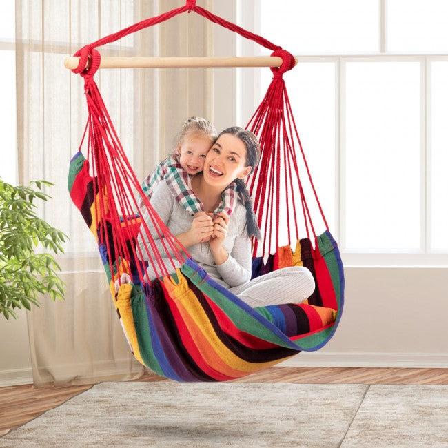 Hamac tip scaun foarte confortabil, functional si util in orice gradina, pe un teren sau pe balcon. Este un ragaz perfect pentru un corp obosit, relaxare perfecta. Trebuie doar agatat in gradina sau terasa si va puteti astfel, bucura de aerul curat si de odihna.