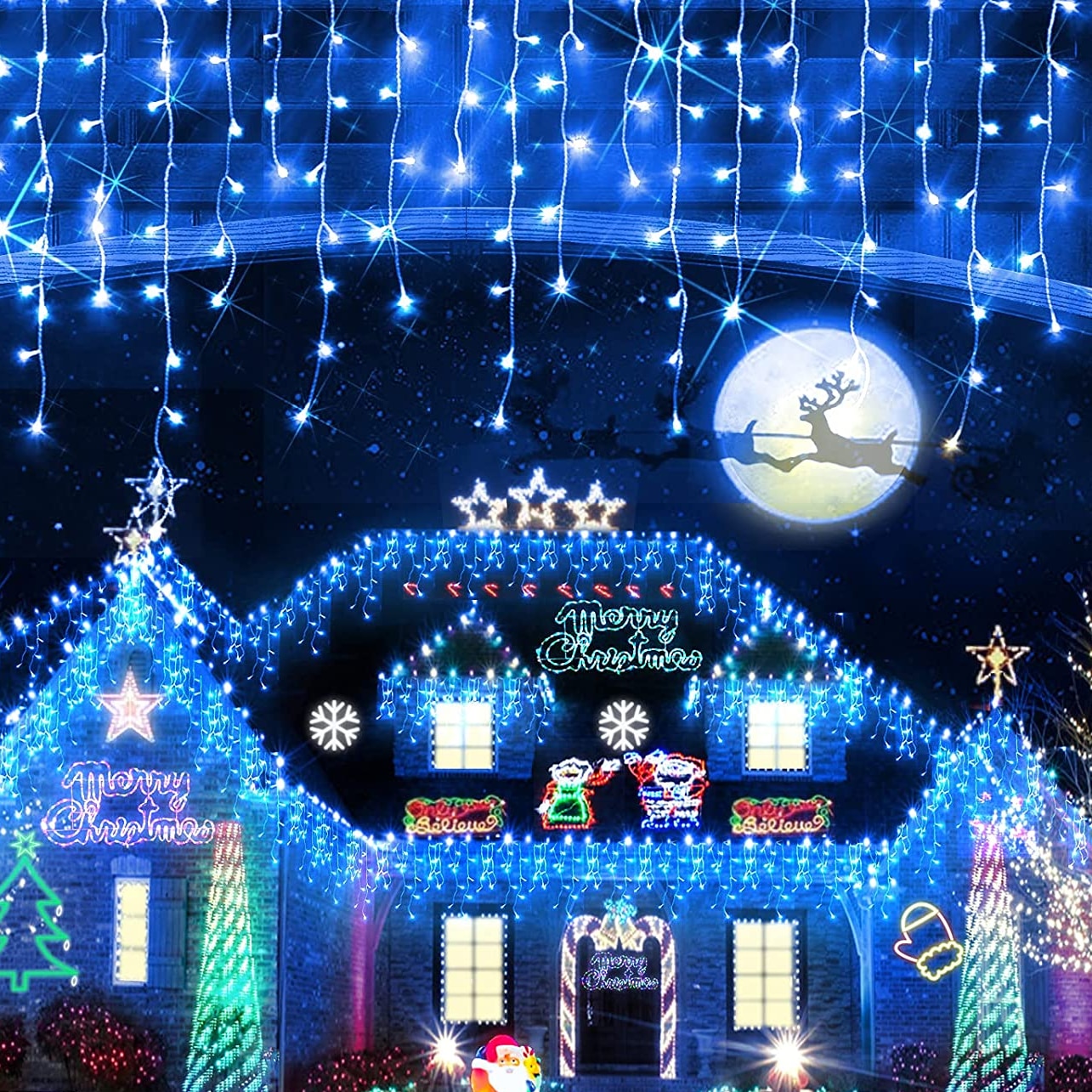 • Instalatie franjuri, 12 metri, 300 LED, Albastru