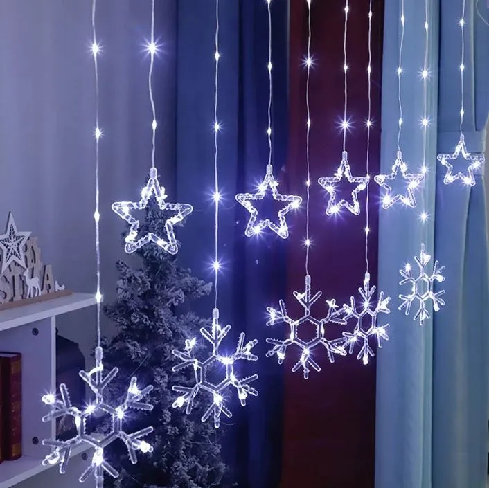 5 fulgi de zapada si 5 stelute, cu o lungime de 3 metri si posibilitate de extindere, care vor lumina spatiul dumneavoastra cu un variator pentru a crea cea mai frumoasa atmosfera de Craciun.