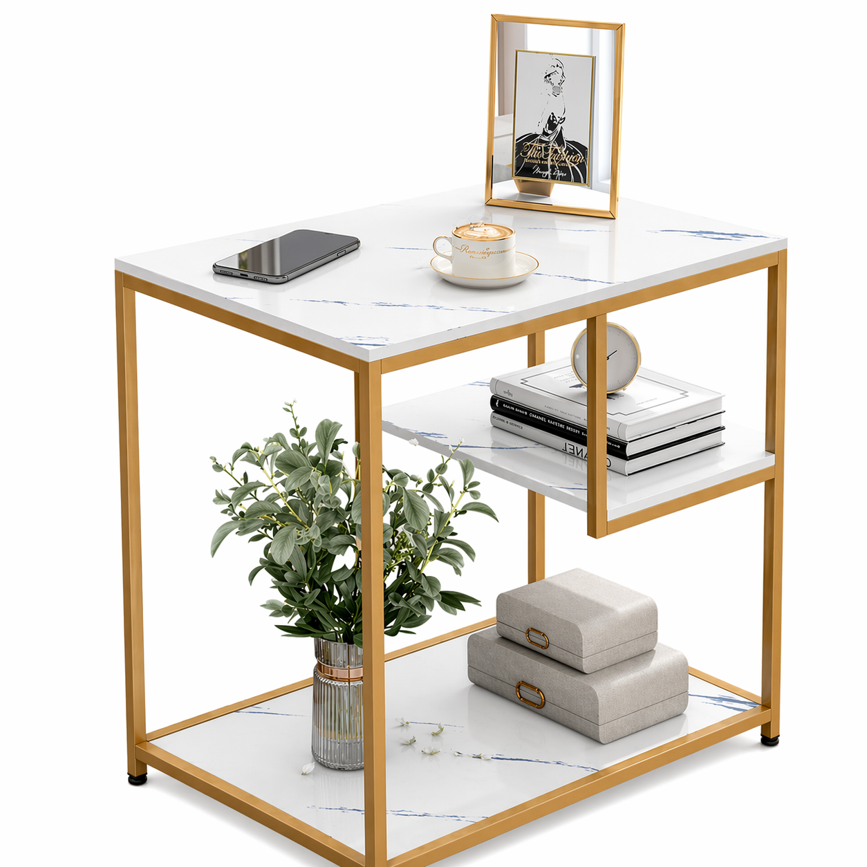 Cu 3 niveluri de depozitare, masuta te ajuta sa pastrezi la indemana obiectele esentiale: pe blatul superior poti aseza cafeaua, laptopul, telefonul sau o vaza, iar rafturile inferioare sunt perfecte pentru carti, cutii de depozitare si decoratiuni, fara sa incarce vizual spatiul.