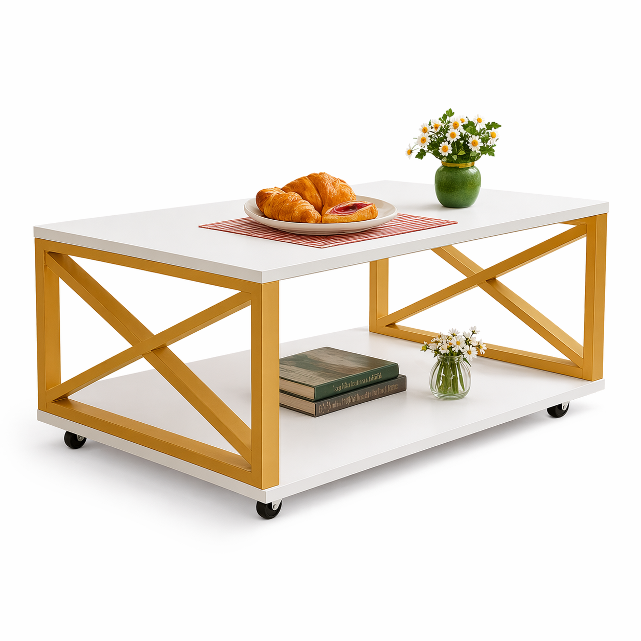 Adauga un plus de stil si flexibilitate livingului tau cu o masuta de cafea moderna, gandita pentru utilizare zilnica. Blatul din placa de particule acoperita cu melamina 100% (grosime 18 mm) ofera o suprafata rezistenta, usor de curatat, ideala pentru cafea, gustari sau decoratiuni.