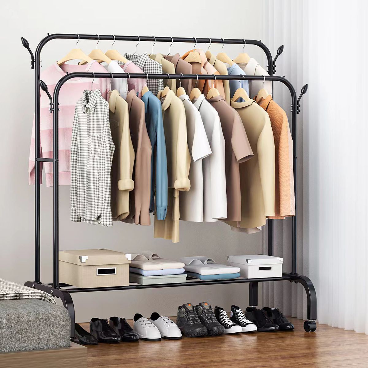 Raftul este perfect pentru companii, magazine, birouri si case! O structura mobila cu roti si instalare usoara, puteti agata multe umerase pe suport. De asemenea, are un suport foarte practic pentru pantofi.
