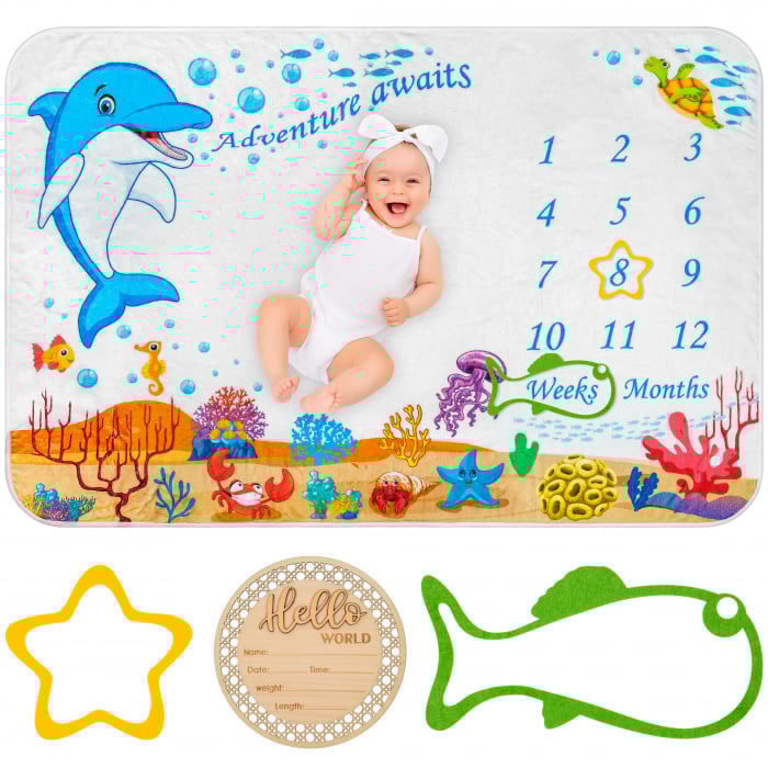 Paturica vine impreuna cu 2 chenare pentru selectarea varstei si un card din lemn de ”Bun venit pe lume”. Material flece placut la atingere, moale, pufos si calduros, perfect pentru bebelusi. Se poate folosi atat in timpul somnului, pentru a acoperi bebelusul in zilele mai racoroase, cat si pentru joaca, alaptare sau in deplasari.