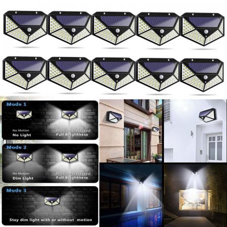 Set 10 x Lampa 100 LED cu panou solar, senzor de miscare
