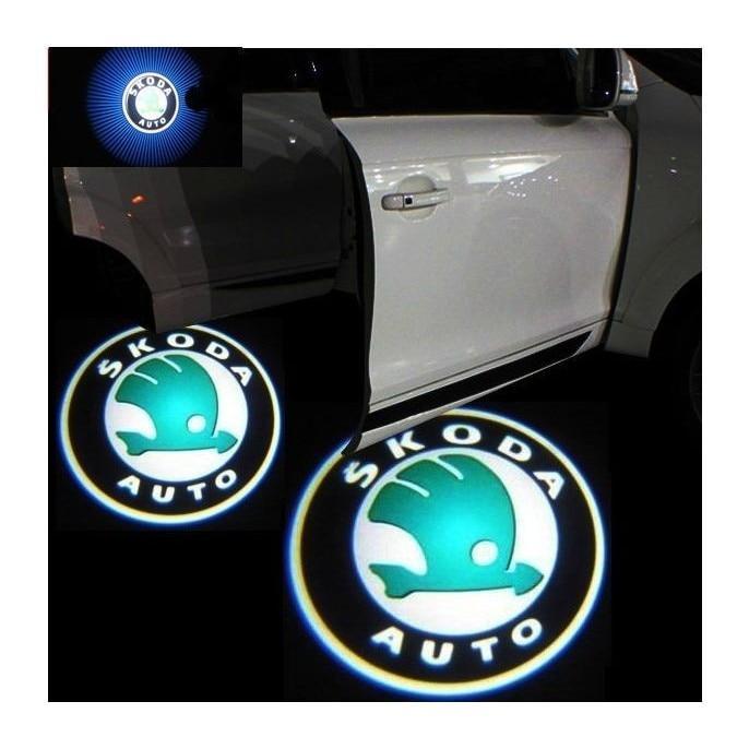 Set 2 holograme LED cu logo SKODA, pentru portiere