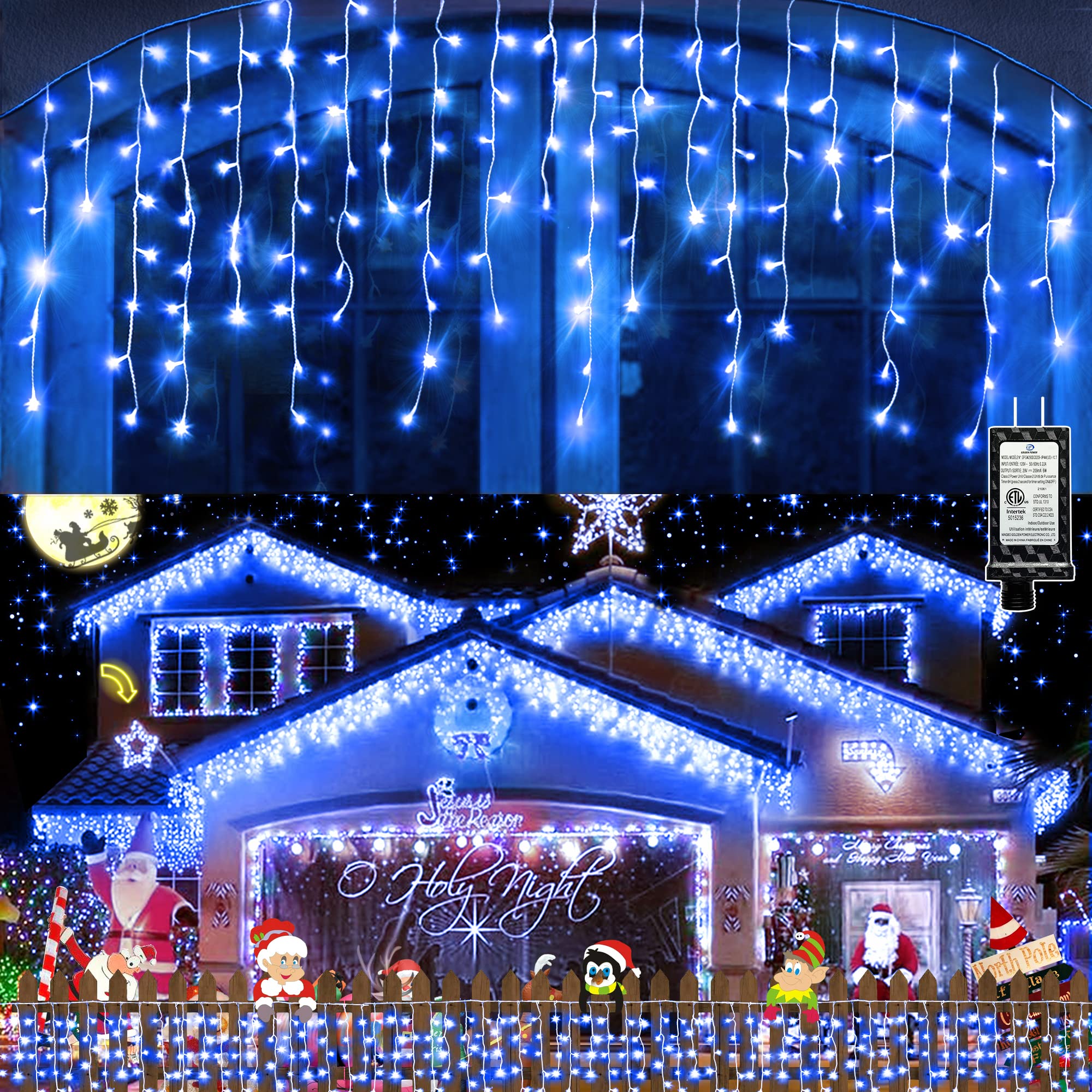 • Set 2 x instalatie de Craciun tip franjuri, 7 metri, Albastru
