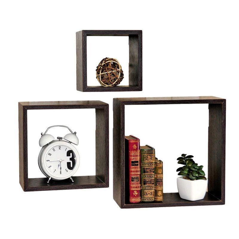 Set 3 rafturi de perete Wenge, sistem fixare ascuns, model mic, maro inchis
