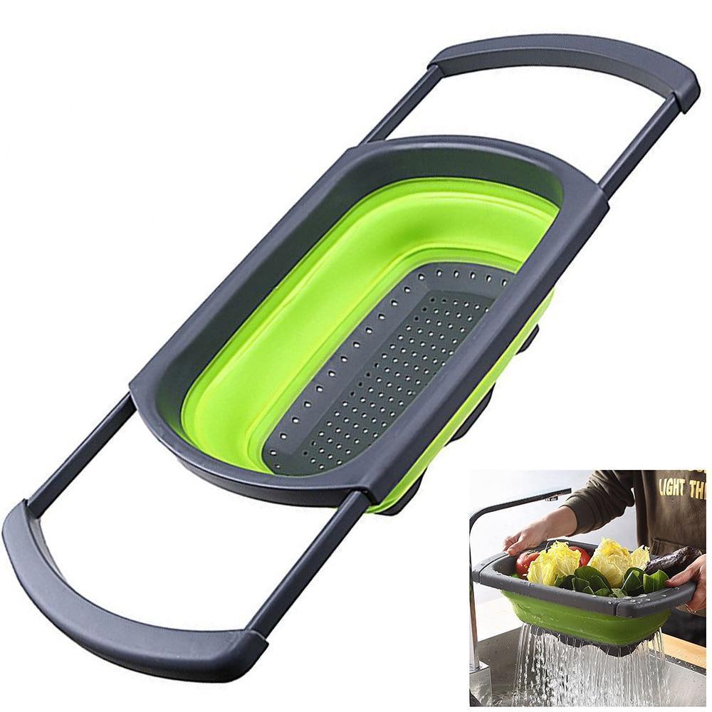Poate fi utilizata ca filtru pentru alimente in momentul spalarii si ca strecuratoare. Datorita faptului ca poate fi pliata, este versatila. Este confectionata din silicon termorezistent si plastic dur, are manere extensibile ce pot fi asezate pe marginile chiuvetei pentru o mai buna stabilitate si un confort sporit. Perforatiile uniform distribuite la baza asigura drenajul rapid si eficient.
