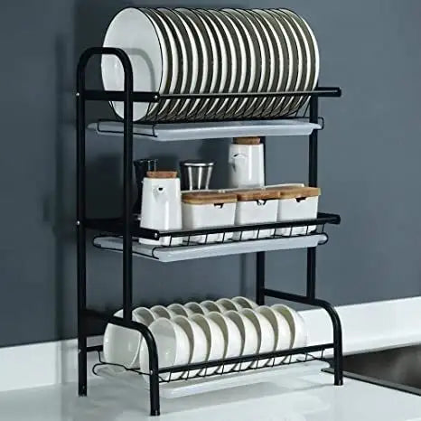 • Suport metalic de vase, 3 niveluri, supraetajat, Negru