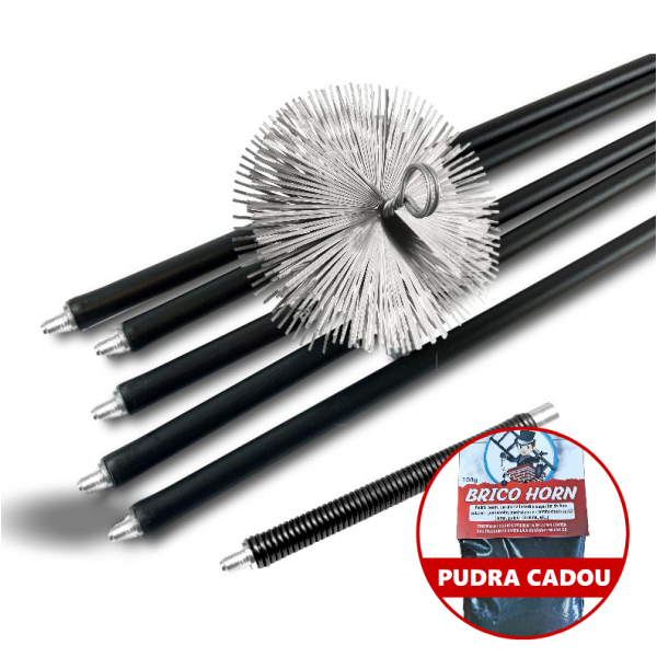 Trusa profesionala pentru curatare cos de fum, conceputa pentru a elimina eficient depunerile de gudron din cosurile de fum metalice sau din caramida. Cu un arici rotund din otel plat de 200 mm si bastoane extensibile de 1.4 m, aceasta trusa asigura o curatare mecanica precisa, fiind ideala pentru sobe, centrale termice sau cosuri prefabricate. Include un resort de prelungire pentru o manevrare usoara si eficienta.