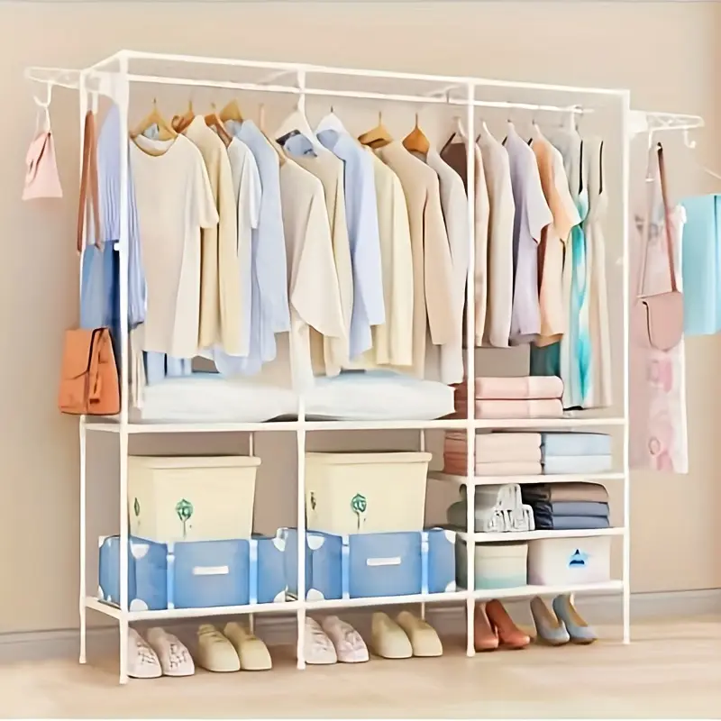 Economiseste spatiu – cuierul este o solutie perfecta pentru cei care au spatiu limitat sau o piesa de mobilier temporara acasa. Umerasul este usor si adaptabil in diverse incaperi. Are 6 rafturi, o bara de agatat si 8 umerase.